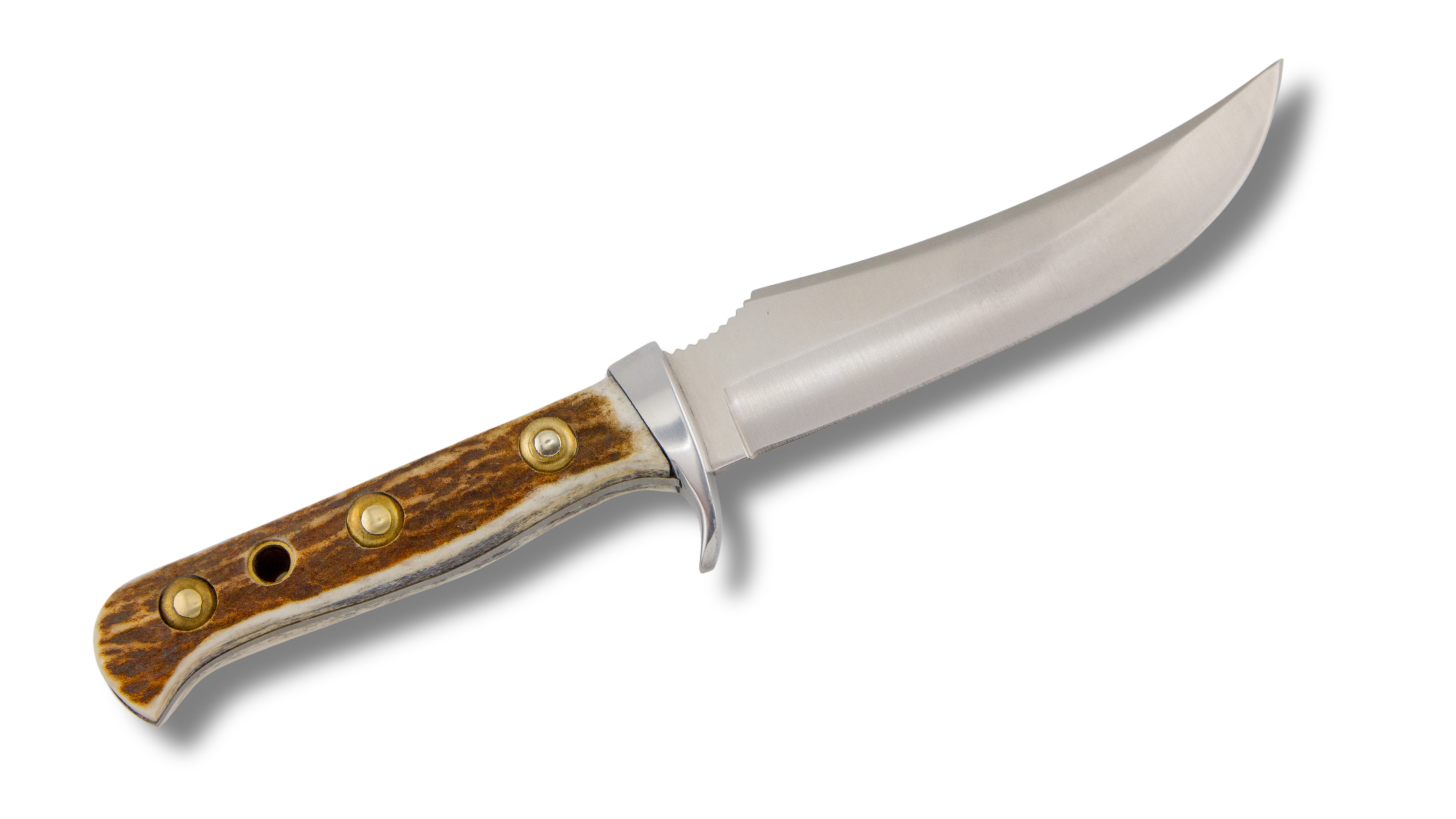 The tip of the skinner blade, which is typical for skinning, is slightly above the back of the blade on this Solingen classic. This makes the cutting edge very bulbous in the front part and thus lengthens it. This has the advantage that much longer cuts can be made and the repeated application of the knife is reduced. Since the tip of the blade is very high up, the risk of accidentally piercing the precious hide is also significantly minimized. On the continuous Flacherl sit selected deer horn scales and a reliable finger protection made of aluminum.