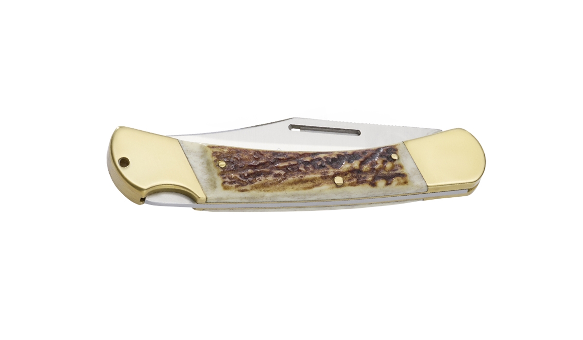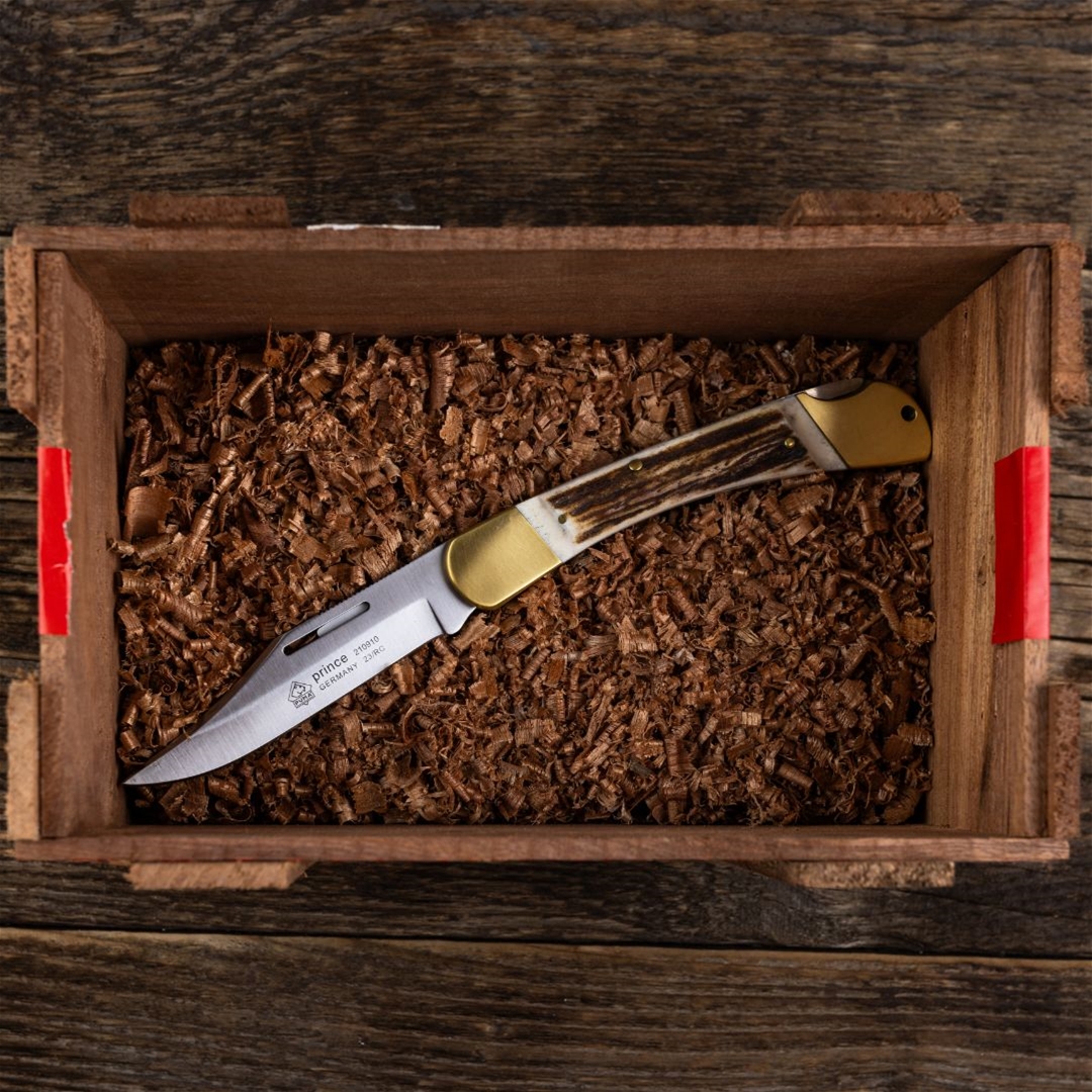 The robust, universally applicable and particularly high-quality sports lock knives with the aristocratic designations have been part of the PUMA range since the 1970's. The stainless, 95 mm long blade of the "prince" has a practical clip point shape as well as a fine hollow grind and locks by means of a reliable back spring lock. Non-slip scales made of genuine stag horn provide a secure grip and are integrated into the sturdy brass handle body for a perfect fit. This classic PUMA knife is the right companion through everyday life, leisure, hiking and all other activities where a good pocket knife is needed.