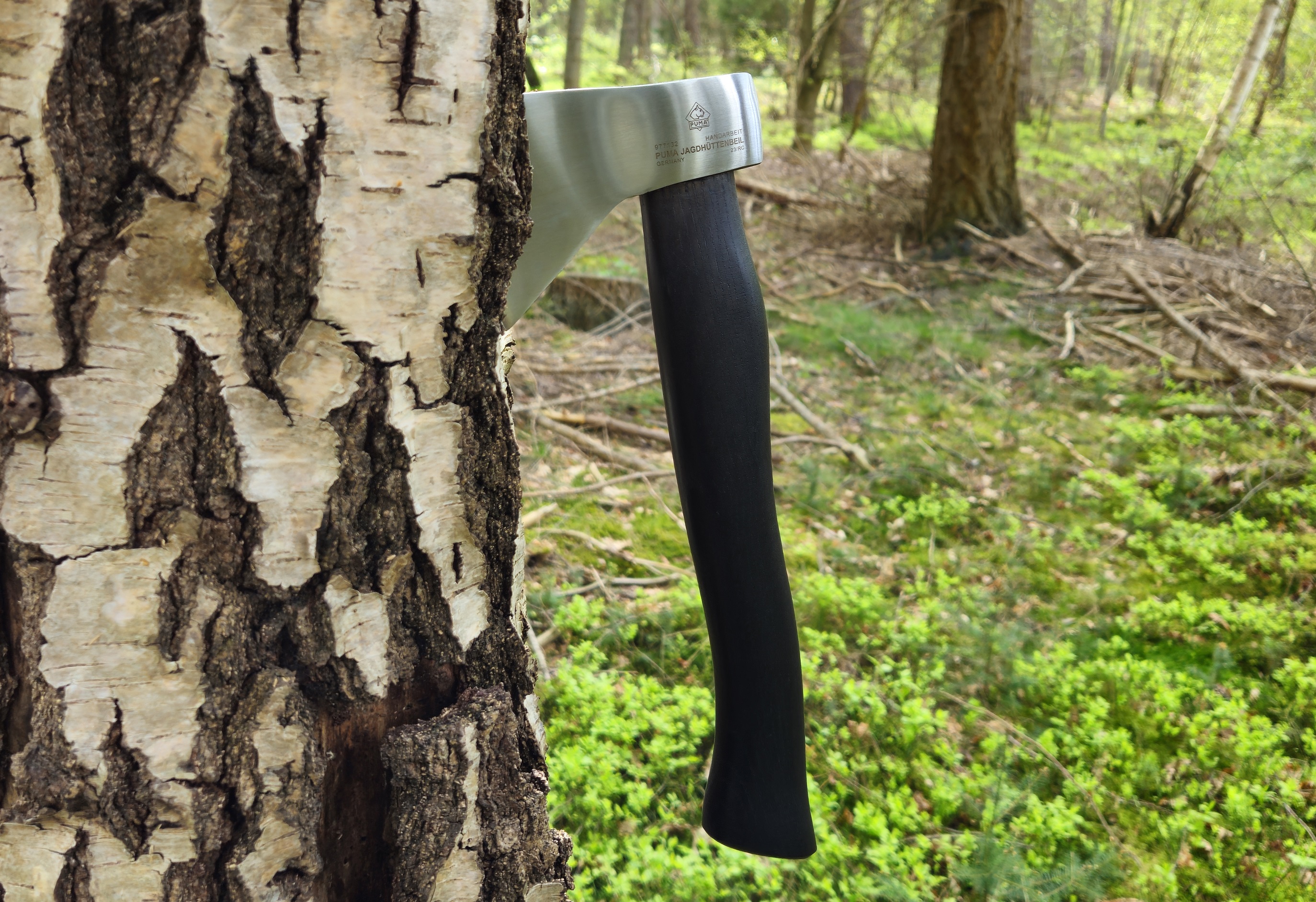 The hunting lodge axe is delivered with a hand-sewn saddle leather sheath from a German manufactory.